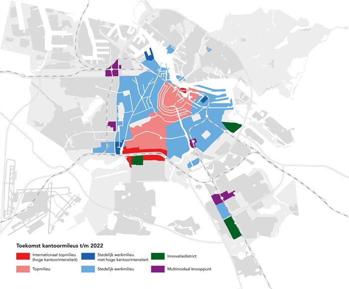 Het college van B en W wil in Amsterdam stadswijken maken met woningen én kantoren (gemengde woon-werkmilieus), die goed bereikbaar zijn met het openbaar vervoer. Een deel van de vraag naar kantoren kan worden opgevangen in de regio. Er zijn mogelijkheden voor gemengde woon- en kantoorgebieden op OV-knooppunten in Hoofddorp, Zaandam, Almere en Duivendrecht. Amsterdam kiest ervoor om niet met de regio te concurreren, maar juist met Europese steden.
